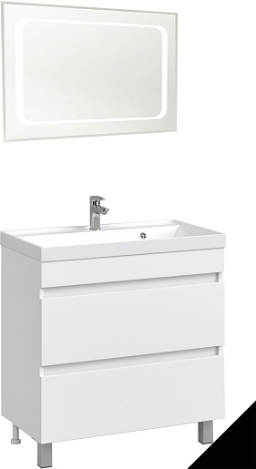 В комплекте: тумба, раковина, зеркало, ножка (4 шт.), комплект креплений.