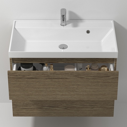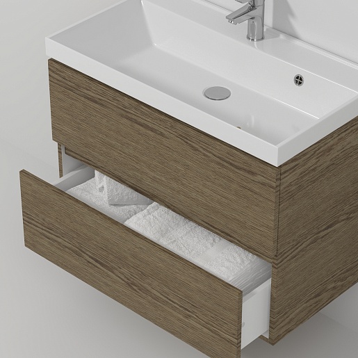 Подвесная тумба с раковиной Водолей Best 80 дуб крымский коричневый.
