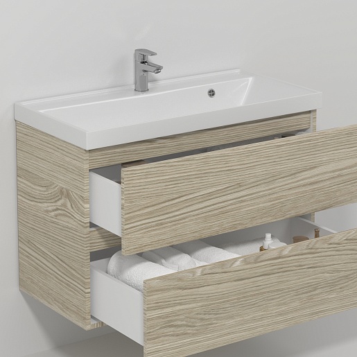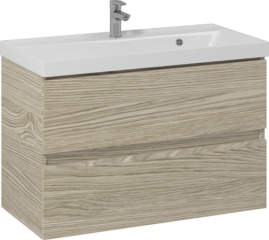 Подвесная тумба с раковиной Водолей Best 80 ореховый дубослив светлый.