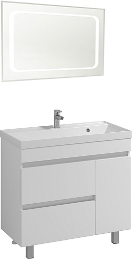 В комплекте: тумба, раковина, зеркало, ножка (4 шт.), комплект креплений.