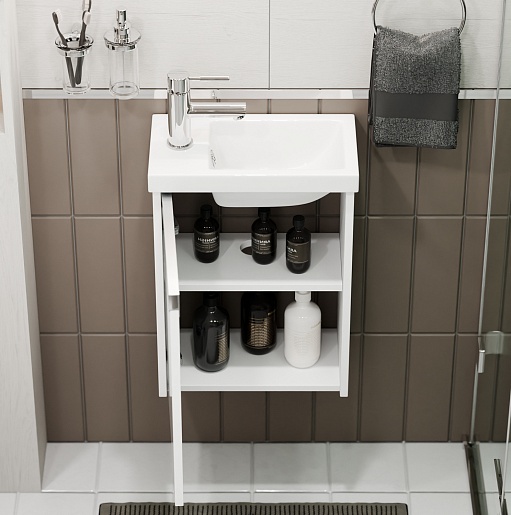 Тумба под раковину Бридж 40 L с ручкой Рейлинг подвесная белая