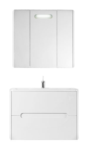- Зеркальный шкаф Флорена 90: влагостойкие, распашные, зеркальные дверцы, стеклянные полочки. Комплектуется галогеновыми светильниками, выключателем и встроенной розеткой.