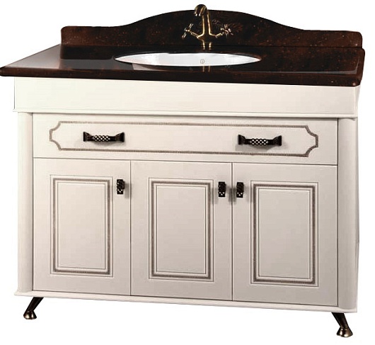 - Тумба с раковиной Изабель 120: раковина Gustavsberg (размер: 500х350х215), столешница S1, тумба под раковину, фасад F-2, ручки и ножки из металла, петли с доводчиками