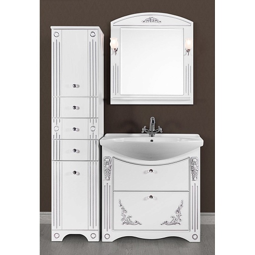 Водолей Мебель для ванной "Кармен 85" 2 ящика, белая/серебро