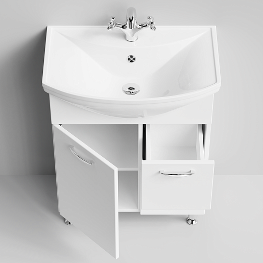 Комплектация: Тумба с раковиной, раковина Стиль 65, регулируемые по высоте ножки.