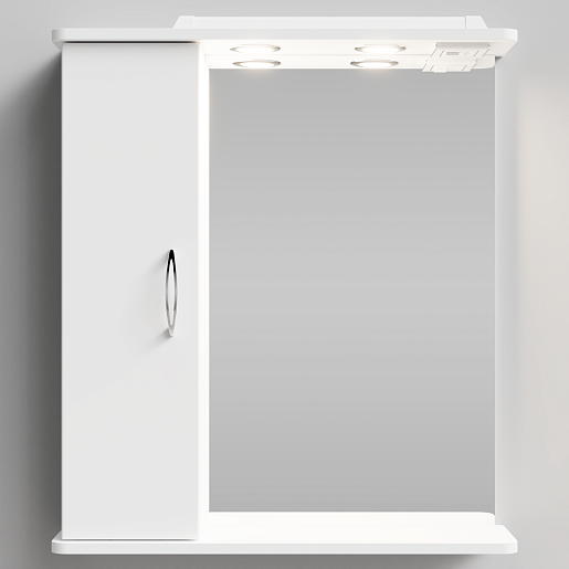 Комплектация: Шкаф оборудован трансформатором мощностью 60 Вт для подключения галогенных светильников со скрытым подключением электропровода, выключателем и розеткой.