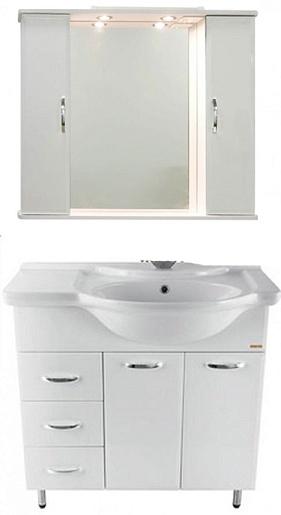 - зеркальный шкаф "Колумбия 95" белый с подсветкой, полочкой и двумя распашными дверцами