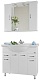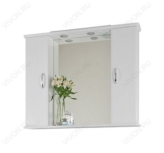 Комплектация: Два закрытых шкафчика, полка. Шкаф оборудован трансформатором мощностью 60 Вт для подключения галогенных светильников со скрытым подключением электропровода, выключателем и розеткой.