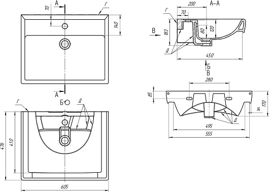 Водолей Мебель для ванной Квадро 60 подвесная белая