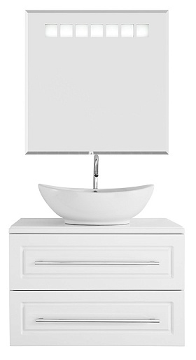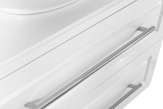 - Тумба с раковиной Либретто 80: Раковина Гамма 56 см, тумба подвесная со столешницей (композитный материал) под накладную раковину, ручки из металла, петли и ящики с доводчиками.