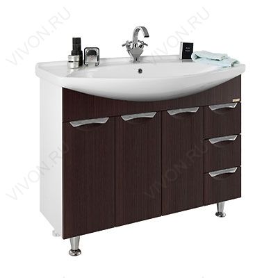- Тумба с раковиной Лира 105: раковина Лагуна 105, распашные дверцы, вкладные полки, ящики оборудованы системой полного выдвижения., ручка (металл, врезная) - 6 шт., ножки (комплект из 4 шт.): металл - 2 шт., пластик - 2 шт.