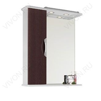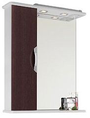 - Зеркальный шкаф Лира 65 L: распашной шкафчик, вкладная полка, галогенный светильник - 2 шт., выключатель и розетка