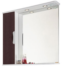 - Зеркальный шкаф Лира 85 L: распашной шкафчик, вкладная полка, галогенный светильник - 2 шт., выключатель и розетка