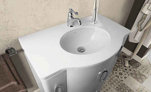 - Столешницa Милана Белая из искусственного камня, Grandex P104PURE-WHITE, 85х53 , с врезной раковиной Vitra 6039В003-0012.