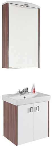 - Тумба под раковину Мона 55: раковина Мини 55, распашная дверца - 2 шт., вкладная полка, ручка (хром, белый пластик) - 2 шт.