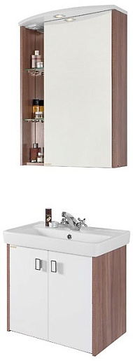 - Тумба под раковину Мона 60: раковина Мини 60, распашная дверца - 2 шт., вкладная полка, ручка (хром, белый пластик) - 2 шт.