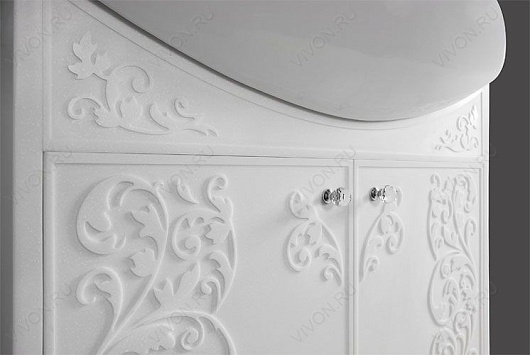 - Тумба с раковиной NAOMI 65: раковина фаянс Dreja, петли Blum с доводчиками, ручки (хром, стекло), опоры регулируемые