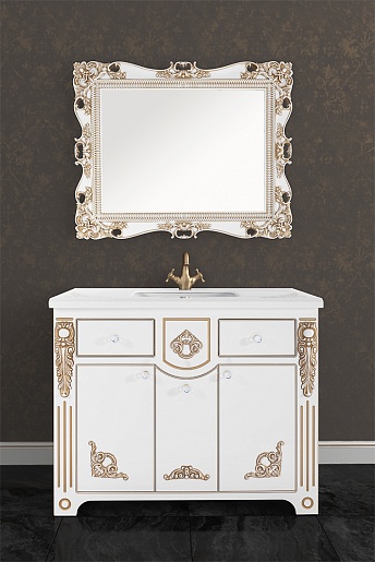 Водолей Мебель для ванной "Версаль 105" белая/золото, зеркало Кармен в раме