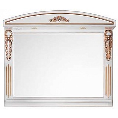 - Зеркало Версаль 120: влагостойкое зеркало, резная рама с портиком, патинированая золотом. Комплектуется галогеновыми светильниками, выключателем и встроенной розеткой.