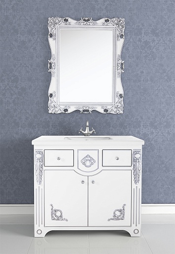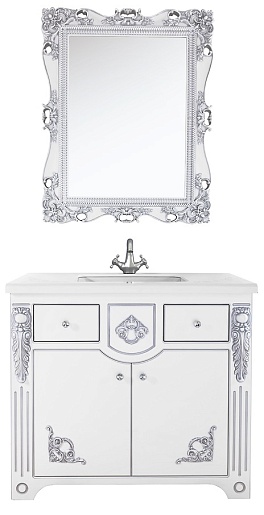 Водолей Мебель для ванной "Версаль 95" белая/серебро, зеркало Кармен в раме