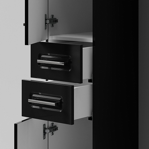 Комплектация: напольный пенал с двумя распашными дверцами и двумя выдвижными ящиками в центре. Ориентация дверей — левая.
