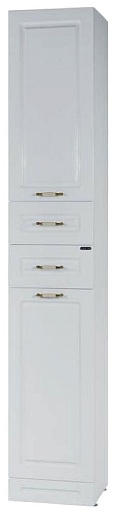 Комплектация: наверху секция с распашной дверцей (ориентация — левая), в центре два выдвижных ящика, внизу откидное отделение с бельевой корзиной.