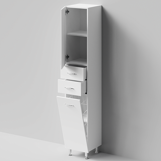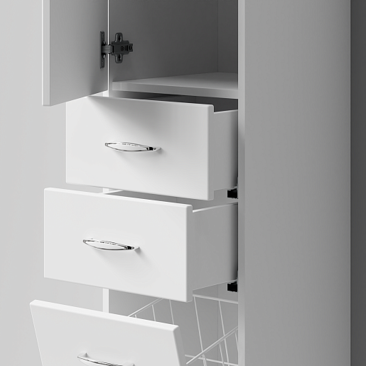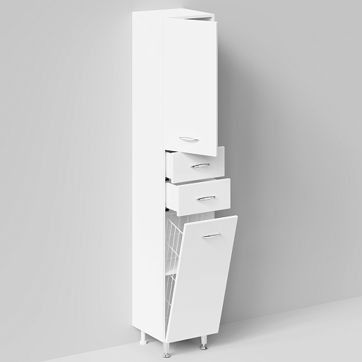 Описание: Закрытые верхнее и нижнее отделения, в центре два выдвижных ящика, корзина для белья.
