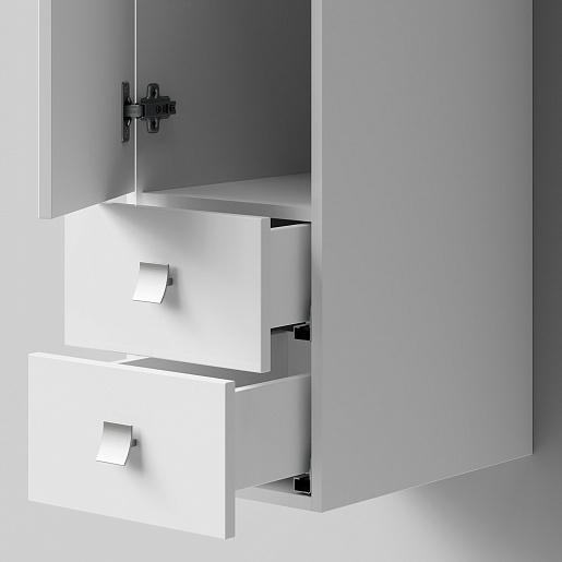 Комплектация: подвесной пенал с большим отделением с распашной дверцей (ориентация левая) и двумя выдвижными ящиками.
