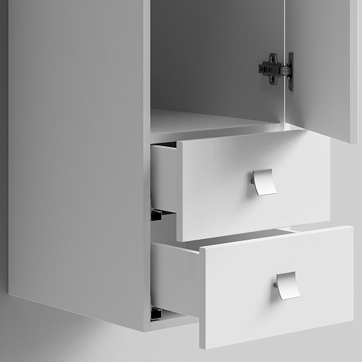 Комплектация: подвесной пенал с большим отделением с распашной дверцей (ориентация правая) и двумя выдвижными ящиками.