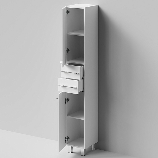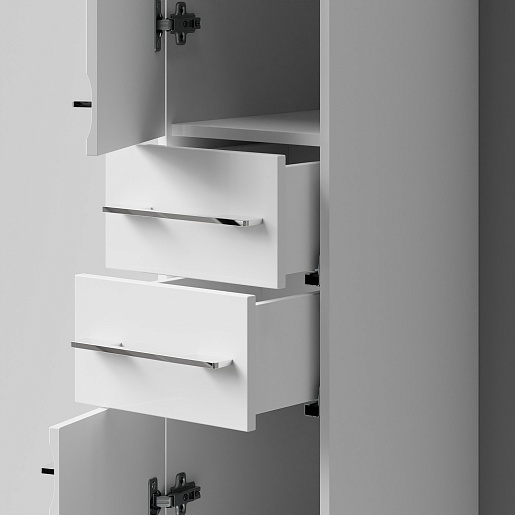 Комплектация: напольный пенал с двумя распашными дверцами и двумя выдвижными ящиками в центре. Ориентация дверей — левая.