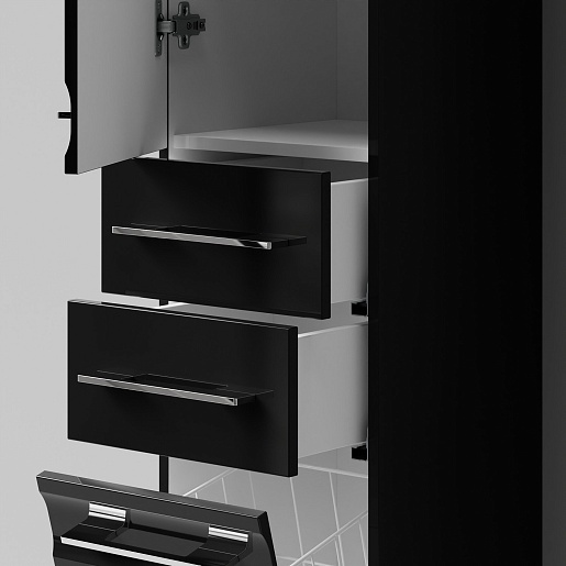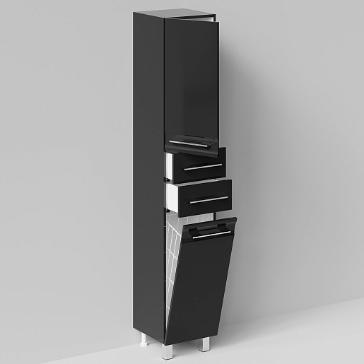 Комплектация: напольный пенал с двумя распашными дверцами и двумя выдвижными ящиками в центре. Бельевая корзина. Ориентация дверей — левая.