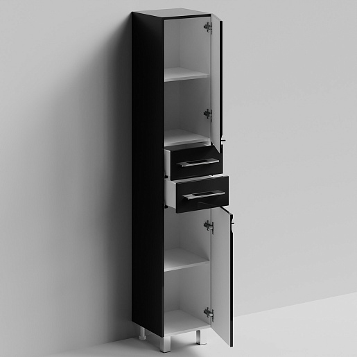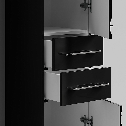 Комплектация: напольный пенал с двумя распашными дверцами и двумя выдвижными ящиками в центре. Ориентация дверей — правая.