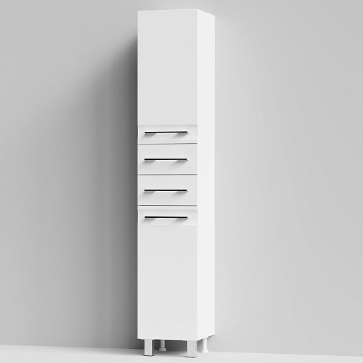 Комплектация: напольный пенал с распашной дверцей, двумя выдвижными ящиками в центре и откидным фасадом с бельевой корзиной. Ориентация дверей — правая.