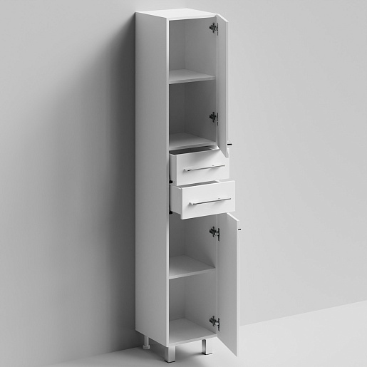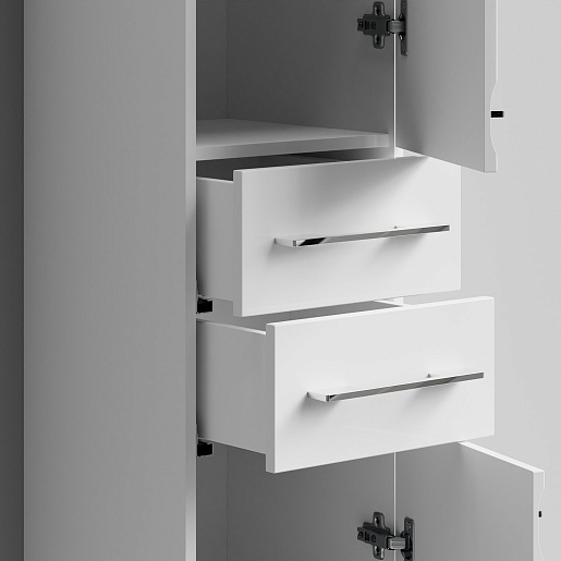 Комплектация: напольный пенал с двумя распашными дверцами и двумя выдвижными ящиками в центре. Ориентация дверей — правая.