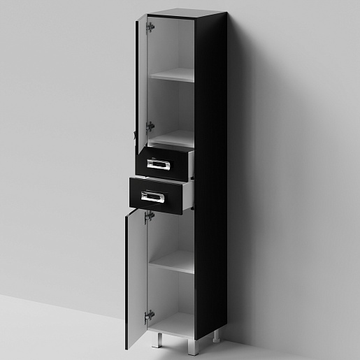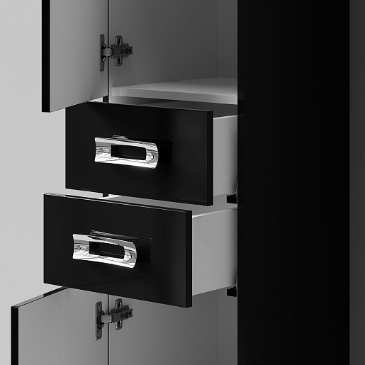 Комплектация: напольный пенал с двумя распашными дверцами и двумя выдвижными ящиками в центре. Ориентация дверей — левая.