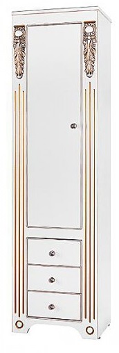 Комплектация: напольный пенал с распашной дверцей и тремя выдвижными ящиками. Ящики и дверь оснащены фурнитурой BLUM. Корпус и фасад МДФ Kronospan, покрытие эмаль SAERLAK (Италия).