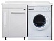 Описание: напольная тумба с ножками, двумя выдвижными ящиками, один из которых можно использовать для хранения бытовой химии, другой — для белья, большая акриловая столешница со встроенной раковиной, открытая ниша для стиральной машины.