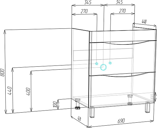 В комплекте: тумба, ножка (4 шт.), комплект креплений.