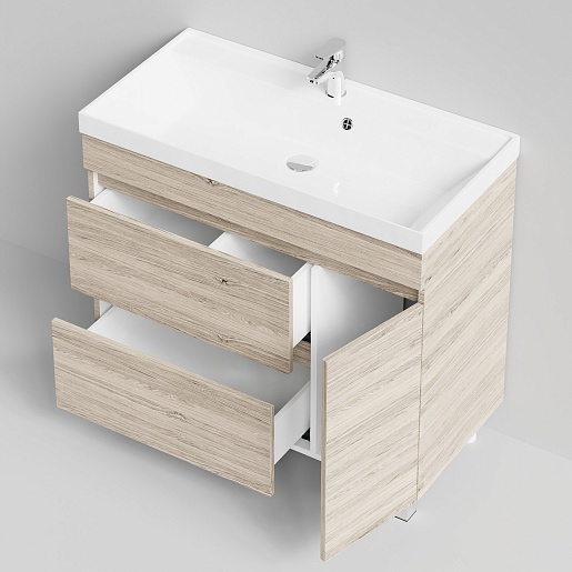 Напольная тумба под раковину Водолей Бест 90 R ореховый дубослив светлый.