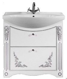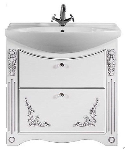 Водолей Тумба под раковину Кармен 75 с ящиками, белая/серебро