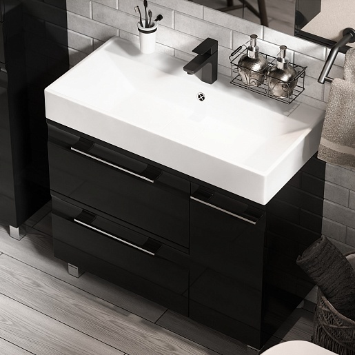 Водолей Тумба под раковину Мальта 90 R с ящиками черная