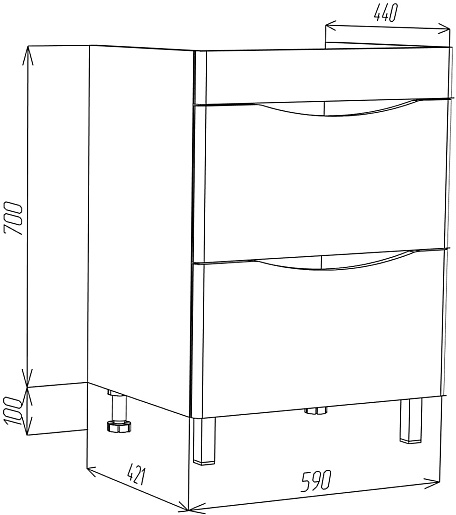 В комплекте: тумба, раковина, ножка (4 шт.), комплект креплений.