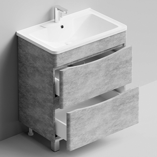 В комплекте: тумба, раковина, ножка (4 шт.), комплект креплений.