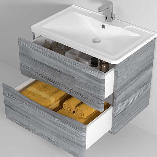 Подвесная тумба с раковиной Водолей Adel 90 лиственница структурная контрастно-серая.