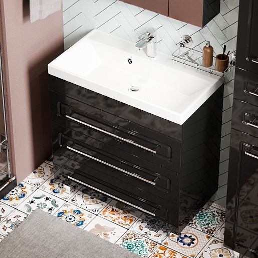 Водолей Тумба с раковиной Арабеска 80 черная