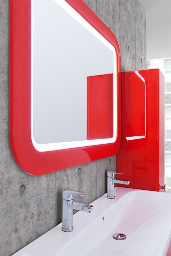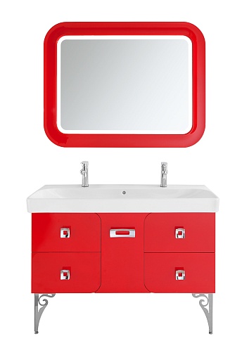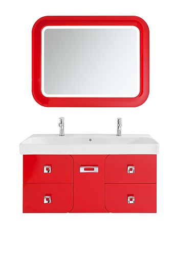 Водолей Тумба с раковиной "Астрид 120" красная, 5 ящиков