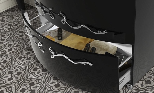 - Тумба под раковину Бернарди 106: корпус и фасад изготовлены из МДФ Kronospan, покрыты высококачественной эмалью SAYERLACK (Италия) по итальянской технологии. Современные механизмы ящиков Blum Legrabox (Австрия) оснащены доводчиками, дно ящиков декорировано бархатом..