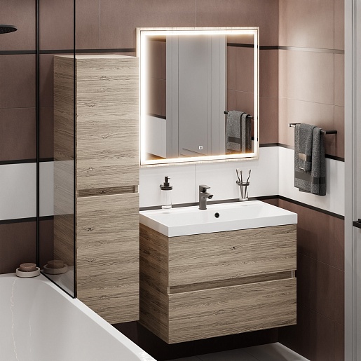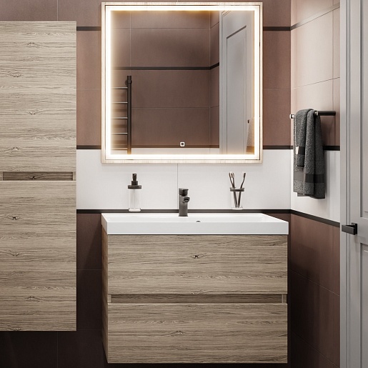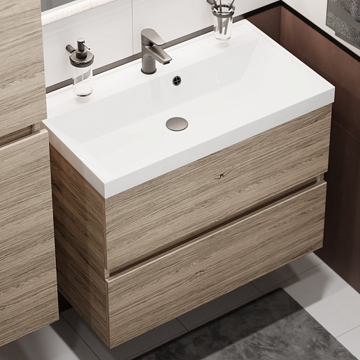 Водолей Тумба с раковиной Бест 90 подвесная ореховый дубослив светлый