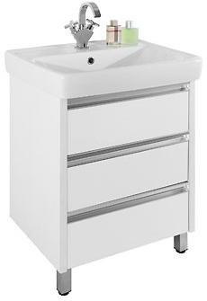 - тумба под раковину: выдвижной ящик - 3 шт., ручка (алюминиевый профиль) - 3 шт., ящики оборудованы системой плавного закрывания и полного выдвижения, ножки (комплект из 4 шт.): металл - 2 шт., пластик - 2 шт.