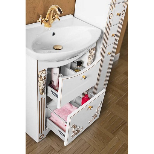Водолей Тумба с раковиной "Кармен 65" с ящиками, белая/золото